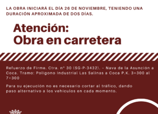 Las obras de refuerzo del firme en la carretera provincial SG-P-3432 comenzarán mañana entre las localidades segovianas de Nava de la Asunción y Coca,...