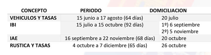 De esta manera, este calendario plasma el retraso en el cobro de los tributos locales y la ampliación del plazo y para poder desarrollar este nuevo calendario, la Diputación ya ha hecho la correspondiente operación de crédito de Tesorería por veinte millones de euros, para que los ayuntamientos no sufran menoscabo en los plazos en que van a recibir la parte proporcional de los tributos locales, aunque la institución provincial no los haya cobrado. De hecho, la institución provincial ha procedido ya al pago del anticipo del 22,5% de la recaudación del pasado ejercicio que supera los 9,8 millones de euros. Así, “la Diputación va a adelantar a los ayuntamientos los tributos locales que luego se encargará de recaudar a los contribuyentes”, tal y como se explica en la siguiente tabla:
