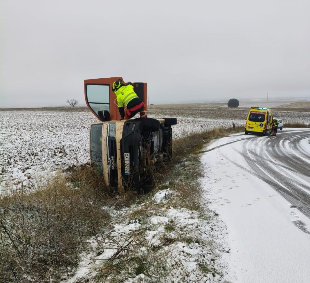 Un vehículo volcado y un ocupante atrapado en Otones de Benjumea