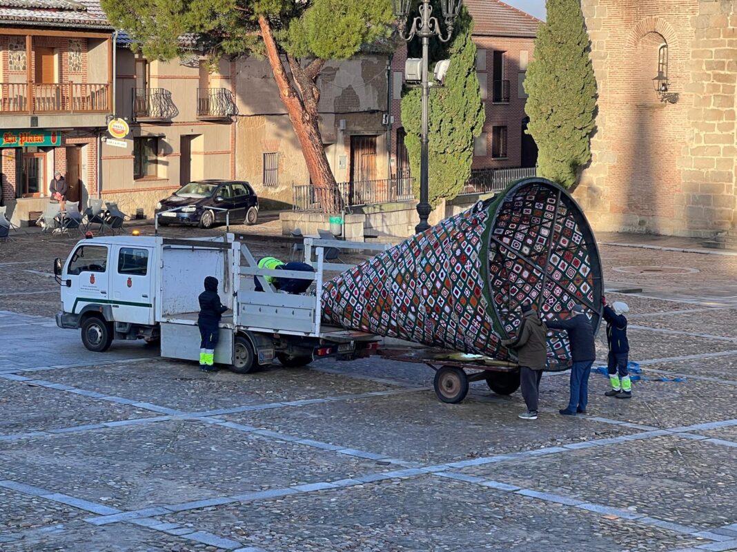 14 manos vecinas crean el singular árbol de Navidad de esta localidad segoviana