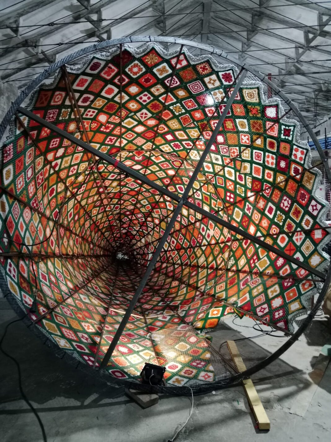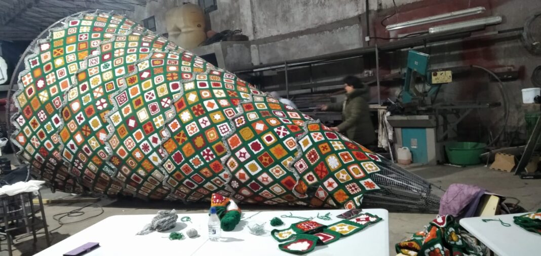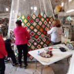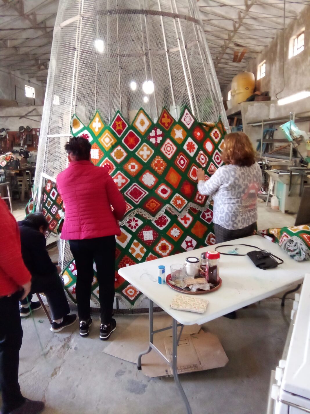 Realizaron unas jornadas iniciales de aprendizaje, recordatorio y práctica de la técnica de crochet. La superficie tejida se compone de 1.400 cuadros, en dieciséis modelos diferentes.