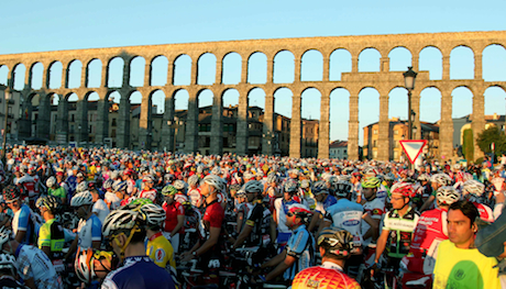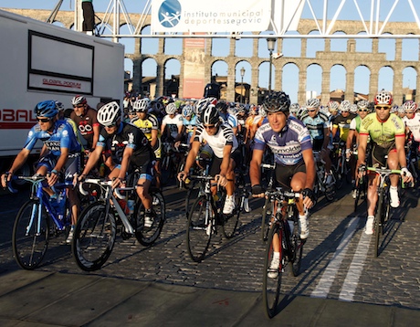 Los casi 2.000 ciclistas de 14 nacionalidades distintas, participantes en la XX Marcha Pedro Delgado partieron del Azoguejo, a los pies del Acueducto segoviano, a las ocho en punto de la mañana. Entre los corredores, se encontraban el segoviano Pedro Delgado, que da nombre a la prueba, y el homenajeado, Óscar Freire, entre otros rostros conocidos del deporte de las dos ruedas.