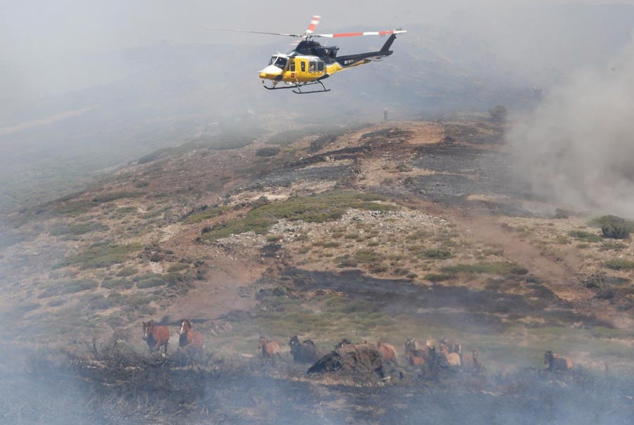 Los caballos tratan de huir del helicóptero pero el piloto les conduce hábilmente hasta una zona segura. La pericia del piloto hizo que los caballos se pusieran a salvo y siguió trabajando en la extinción del incendio. También estuvo hábil Pedro González para captar toda la secuencia.