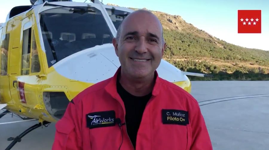 En ese momento, los miembros de una brigada helitransportada de la Comunida de Madrid que participaba en la extinción, les descubren desde el helicóptero y se dan cuenta del peligro que corren.