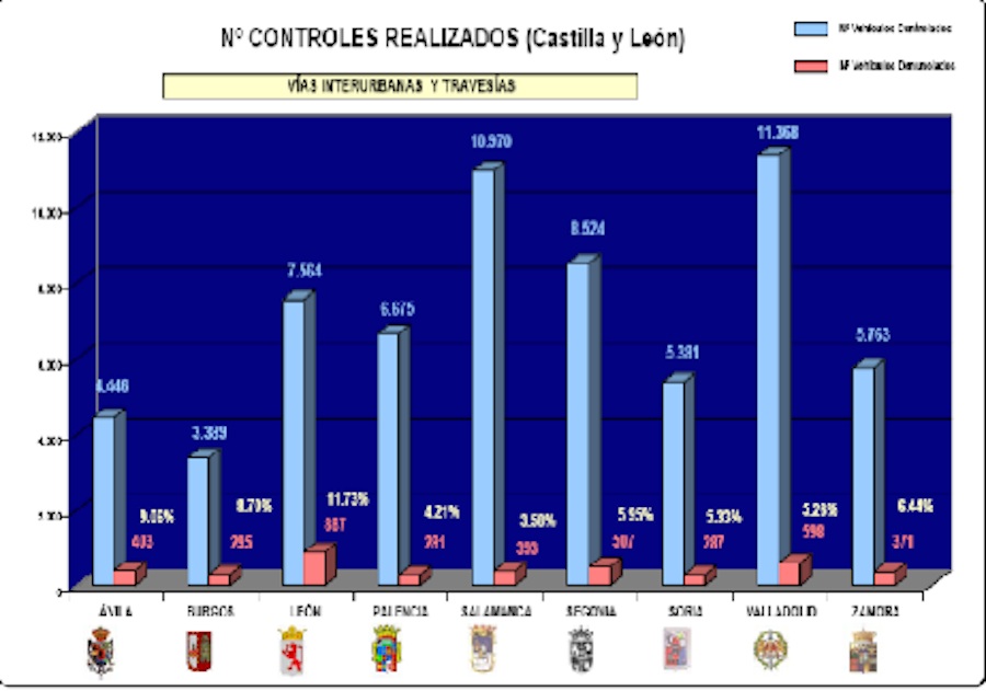 En Castilla y León, fueron 64.080 los controles, de los que en 4.022 ocasiones (el 6,28%) los conductores recibieron una sanción.