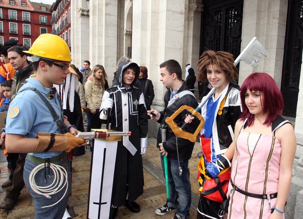 Un centenar de personas participó hoy en la convocatoria de ‘cosplay’, un desfile de disfraces inspirados en personajes de cómic y manga, que arrancó en la Plaza Mayor de Valladolid y recorrió las principales calles del centro histórico de la ciudad. Esta actividad forma parte del programa del V Salón del Cómic y Manga de Castilla y León, que abrió sus puertas hoy y concluirá mañana en la Feria de Valladolid, tras una semana de charlas, conferencias homenajes al ilustrador Jesús Redondo y proyecciones.