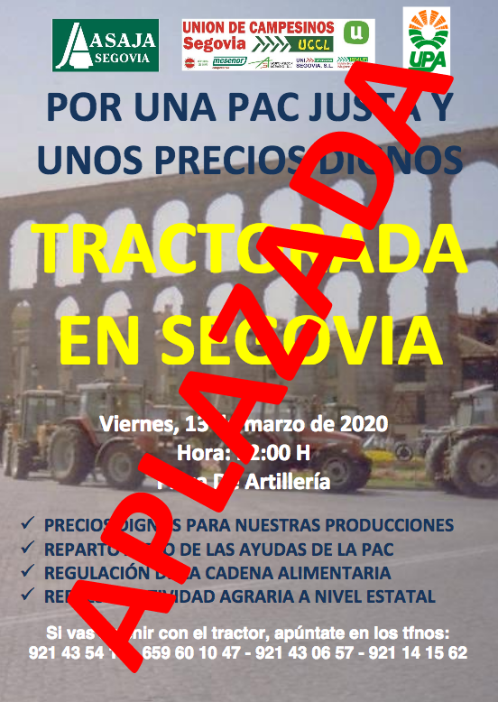 UCCL-Segovia informa del aplazamiento de la tractorada/manifestación que se iba a celebrar en Segovia el viernes 13 de marzo.