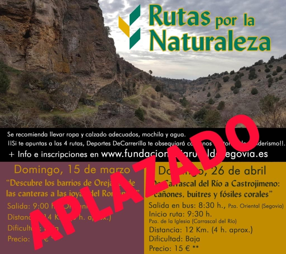 Aplazadas las rutas por la naturaleza de la Fundación Caja Rural previstas para los días 15 de marzo y 26 de abril. Los inscritos tienen dos opciones: