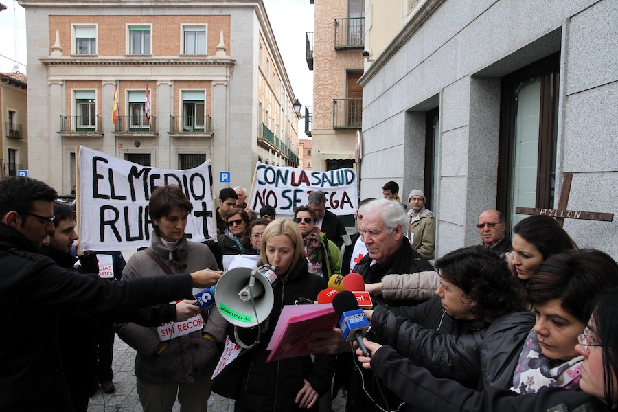 Una treintena de afectados por el cierre de las urgencias nocturnas en el Punto de Atención Continuada de Ayllón (Segovia) se manifestaron hoy ante la puerta de la Delegación Territorial de la Junta de Castilla y León en la capital segoviana para mostrar su “repulsa y rechazo” a la decisión tomada desde la Consejería de Sanidad el pasado mes de octubre. Miembros de la Plataforma Contra la Degradación Sanitaria en el Medio Rural de Ayllón esperaron que se tome ejemplo de la marcha atrás en el traslado de la ESO rural porque a su entender, la cuestión sanitaria “afecta a todos los ciudadanos” y no solo a alumnos de 1º y 2º de Secundaria.