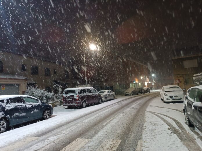 Según el boletín de fenómenos adversos emitido a las 07:13 horas, debido al paso de la borrasca ‘Kristin’ se esperan nevadas desde primera hora de la mañana y hasta las 18:00 horas, con una probabilidad de entre el 40% y el 70%.