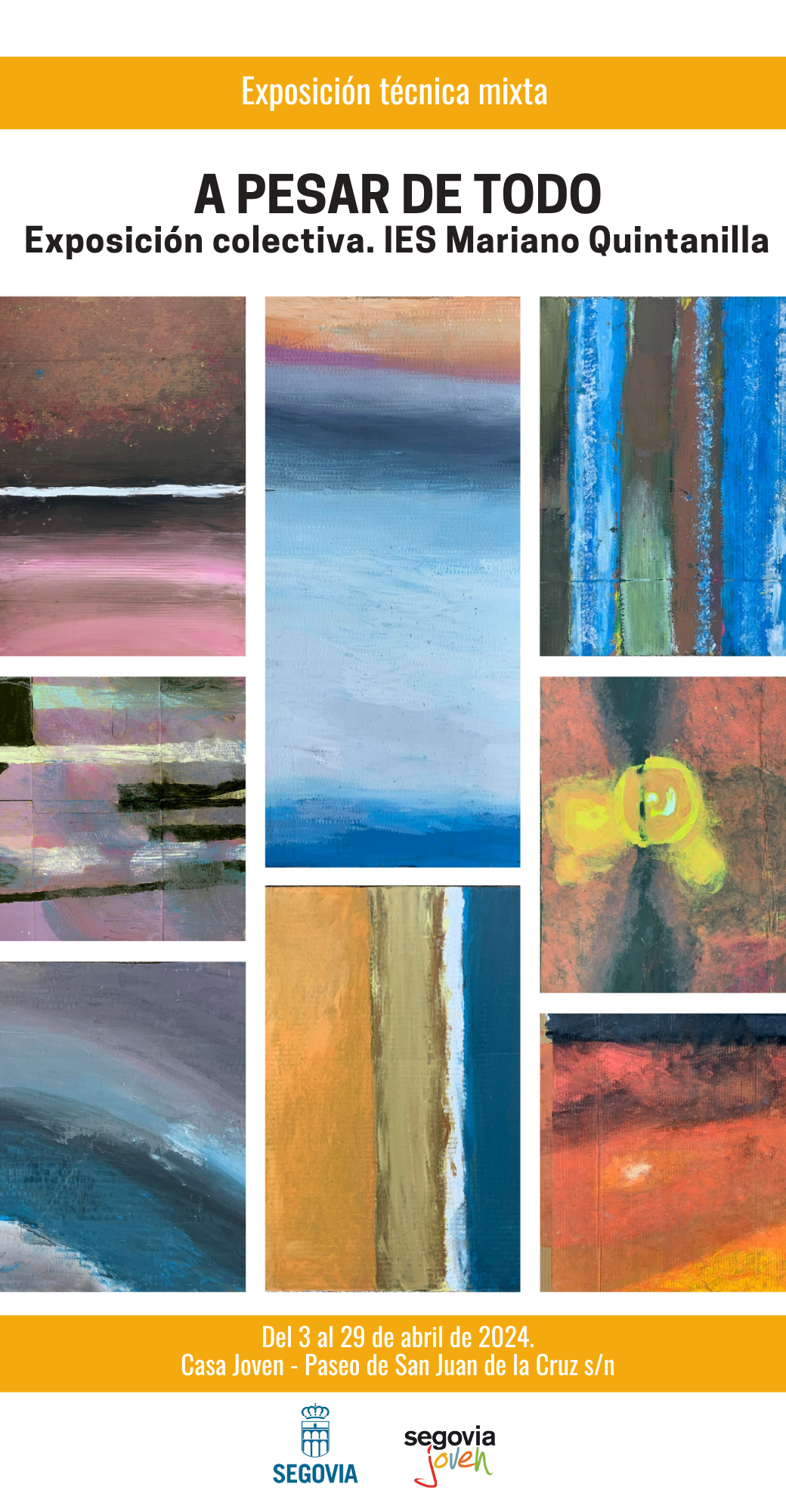 El área de Educación y Juventud del Ayuntamiento de Segovia acoge en la sala de Exposiciones de la Casa Joven, la muestra “A pesar de todo”, de los alumnos de la asignatura de “Educación Plástica” de 1º, 3º y 4º de la ESO del IES Mariano Quintanilla.