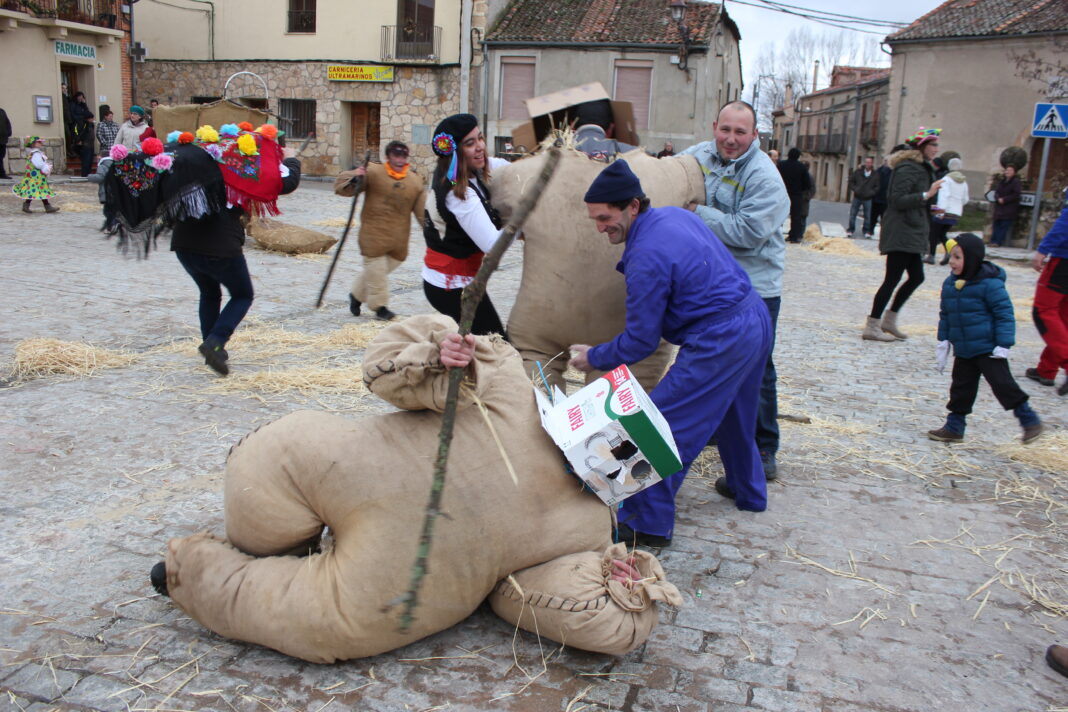Por su parte, el tesorero de la asociacion cultural ‘La Cachucha’ de Arcones , Julio Sanz, detalla que los quintos son los que manejan las vaquillas. “Una tabla de madera a la que se le añade unos cuernos en uno de los extremos. El Sábado de Carnaval por la tarde, las mujeres y las madres de los quintos se reúnen para decorar las vaquillas con flores de papel y unas mantillas”, explica Julio Sanz. También se utilizan vistosos y coloridos mantones de manila. Una vez montados se dejan preparados para el día siguiente.