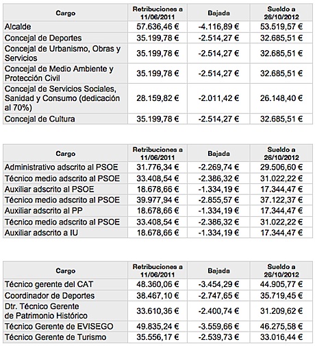 El Boletín Oficial de la Provincia de Segovia publica este viernes el acuerdo adoptado por el Ayuntamiento de Segovia en Pleno, en la sesión celebrada el pasado día 1 de octubre, en cumplimiento de lo establecido en el artículo 75.5 de la Ley 7/85 de 2 de abril reguladora de las Bases de Régimen Local. En él, se hace público el acuerdo por el que el Alcalde y Concejales de la corporación con dedicación exclusiva o parcial verán reducidas sus retribuciones en la cuantía de una catorceava parte en el ejercicio 2012, correspondiendo a la paga extra de Navidad, suponiendo un ahorro total entre todos de 16.185,31 euros para el Ayuntamiento.