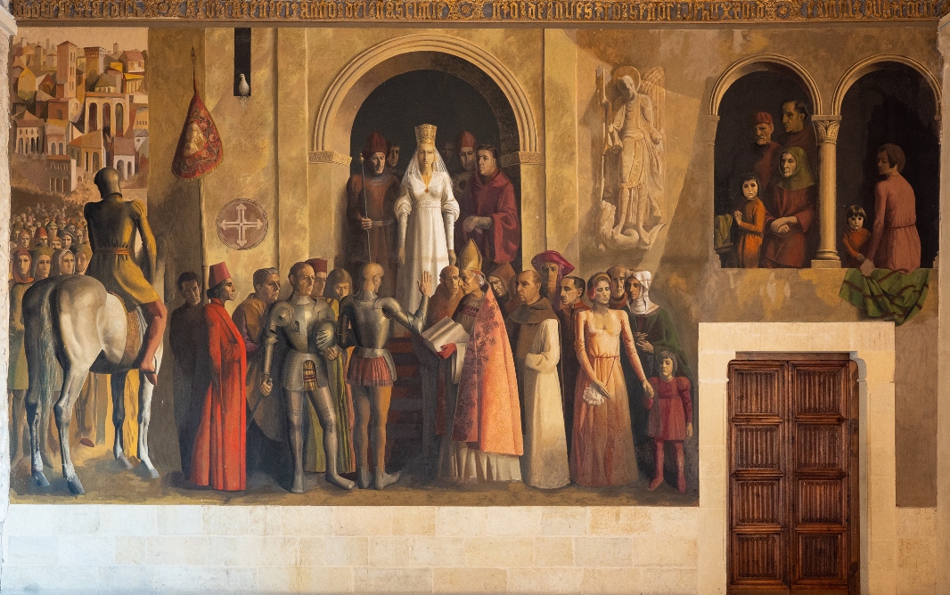 Pintura Mural Proclamación de la reina Isabel en la Sala de la Galera del Alcázar de Segovia