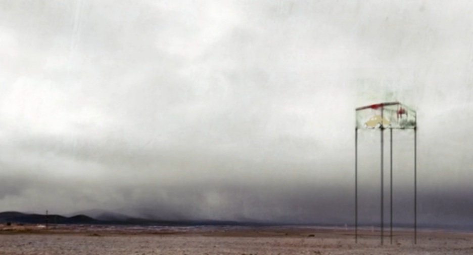 La base de la vivienda estará compuesta por una una lamina de PVC con acabado de espejo, para que de esta forma desde abajo se pueda ver proyectada la tierra en el cielo, «creando así una conexión entre los dos mundos, del cielo y el de la tierra», explica el segoviano en su proyecto. La cimentación del conjunto se ajustará a las recomendaciones del estudio geotécnico, y preferiblemente se emplearan losas de hormigón superficiales con el fin de minimizar el impacto sobre el terreno a ocupar. Los materiales a emplear en los cerramientos virtuales serán de naturaleza metálica, de diferentes permeabilidades y texturas.