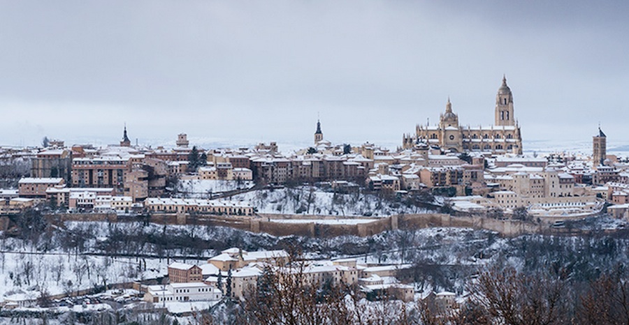Deslizando el ratón del ordenador apreciamos como desde las 7.14 horas, Segovia se despereza tras una noche de nieve que ha dejado cubiertos los tejados y el suelo de la ciudad milenaria. Conforme pasa el día, la lluvia y el sol empiezan a derretir los copos de nieve para mostrar los verdes pastos de las afueras de la ciudad y los árboles que, aunque todavía desnudos tras el invierno, esperan florecer en primavera.