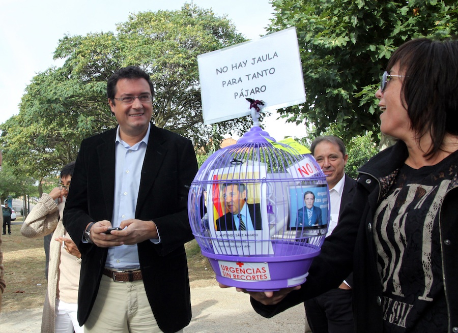Acompañado por el secretario general del PSOE de Segovia, Juan Luis Gordo, y el portavoz de los socialistas en la localidad segoviana de Ayllón, Alberto Navas, el secretario de organización del PSOE, tildó de “prepotente” al consejero de Sanidad, Antonio María Sáez Aguado, por asegurar constantemente ante las Cortes de Castilla y León “que no hay recortes” y aseguró que exigirán y “meterán presión” ante las Cortes para evitar que se deje de atender a los vecinos, tanto de la localidad, como de los 51 pueblos afectados por la medida del cierre de las guardias nocturnas de los PAC.