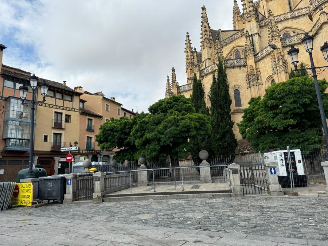 Los aseos públicos que se encuentran junto a la Catedral de Segovia, en la Plaza Mayor, están siendo remodelados. Los trabajos de reforma terminarán a finales del verano.