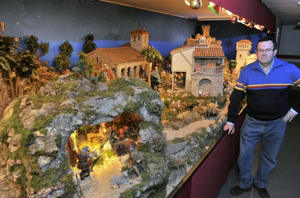 En la actualidad, ocupa cada año 16 metros cuadrados de un garaje de su propiedad con más de 250 figuras de barro de 21, 17 y 15 centímetros, colocadas en un diorama que tiene agua corriente, nueve módulos de edificios y una central electrónica que regula la cantidad de luz y diversos efectos de sonido: truenos, viento, animales, voces de niños jugando…