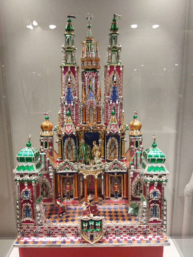 En esta primera ocasión de colaboración, la propia Fundación cedió tres de las piezas de su colección. La primera es una talla en madera del siglo XV, de origen flamenco, que representa a la Virgen con el Niño. La segunda es un misterio de la empresa murciana Decorarte, firmado por José Fernández (fundador de la misma), realizadas en arcilla policromada y lienzada. A ellas se suma un lienzo de escuela cuzqueña, realizado en el siglo XVII con la imagen de la Virgen y el Niño, cuyo marco original incorpora pequeños espejos.
