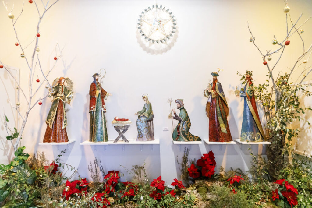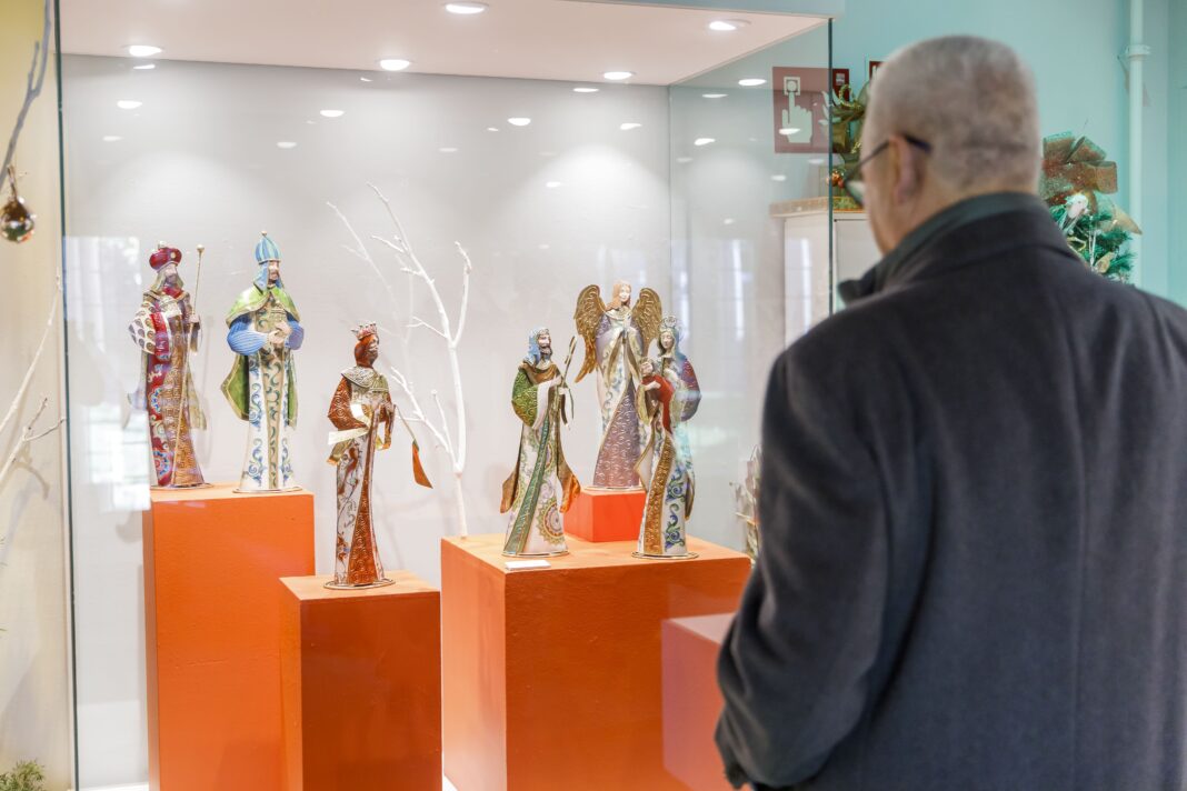 Sin embargo, tal y como detallaron los presentes en la inauguración, la aportación “más significativa” a ‘Belenes invitados’ procede de la colección de Ángeles Martín Pérez, quien lleva años atesorando piezas de diferentes rincones del mundo”. Esto ha permitido añadir nuevas nacionalidades a la exposición de este año, ya que para la ocasión ha cedido obras italianas, dominicanas, colombianas, bolivianas, griegas, chilenas, croatas, brasileñas y españolas”, señaló Reguera. Estas últimas pertenecen tanto a talleres como Artesanía Belenística San Julián de Sevilla, y a firmas artesanales históricas como la murciana de Manuel Ortigas Méndez.