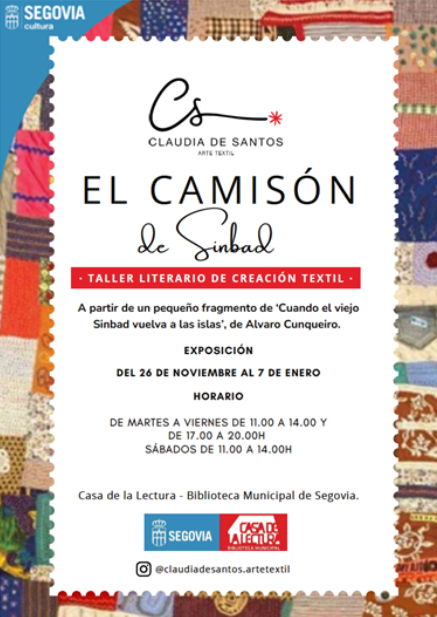 Esta exposición es el resultado del taller de arte y reciclaje textil ‘El camisón de Sinbad’ impartido por Claudia de Santos, y basado en un pequeño fragmento de ‘Cuando el viejo Sinbad vuelva a las islas’, de Alvaro Cunqueiro.