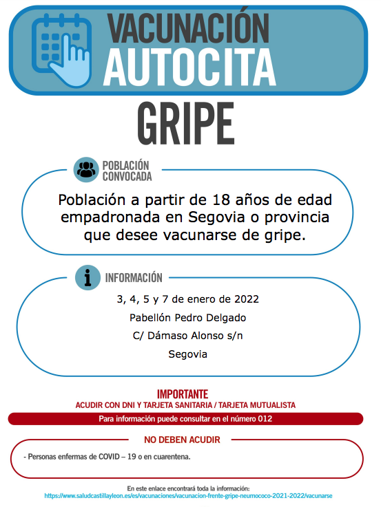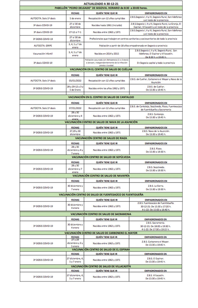 Calendario completo de vacunación Covid y Gripe en Segovia y pueblos