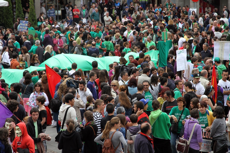 Durante una jornada de huelga que transcurrió sin incidentes, como señalaron fuentes de la Subdelegación del Gobierno en Segovia, la marea verde tiñó la Plaza del Azoguejo al mediodía para criticar que la conocida como “ley Wert” supone “volver al pasado educativo franquista” a través de reválidas, educación segregada por sexos, aumento del peso de la religión católica y su importancia para la calificación final de la ESO y Bachiller.