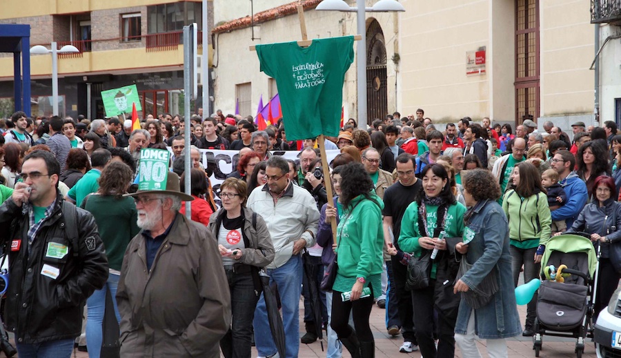 Un gran lazo verde en la cabecera, abrió paso a la manifestación que entre consignas como “menos corrupción y más educación” o “Wert escucha, la pública está en lucha”, llegó a la Subdelegación del Gobierno en Segovia. Entre paraguas abiertos debido a las intensas precipitaciones que a esa hora caían en la ciudad, el comunicado leído por un representante de la Federación Provincial de Asociaciones de Madres y Padres de Centros Públicos de Segovia (Fedampa) subrayó la “brutal agresión” que la reforma del Ejecutivo central ejercerá sobre la educación y advirtió de sus “nefastas” consecuencias en los estudiantes.