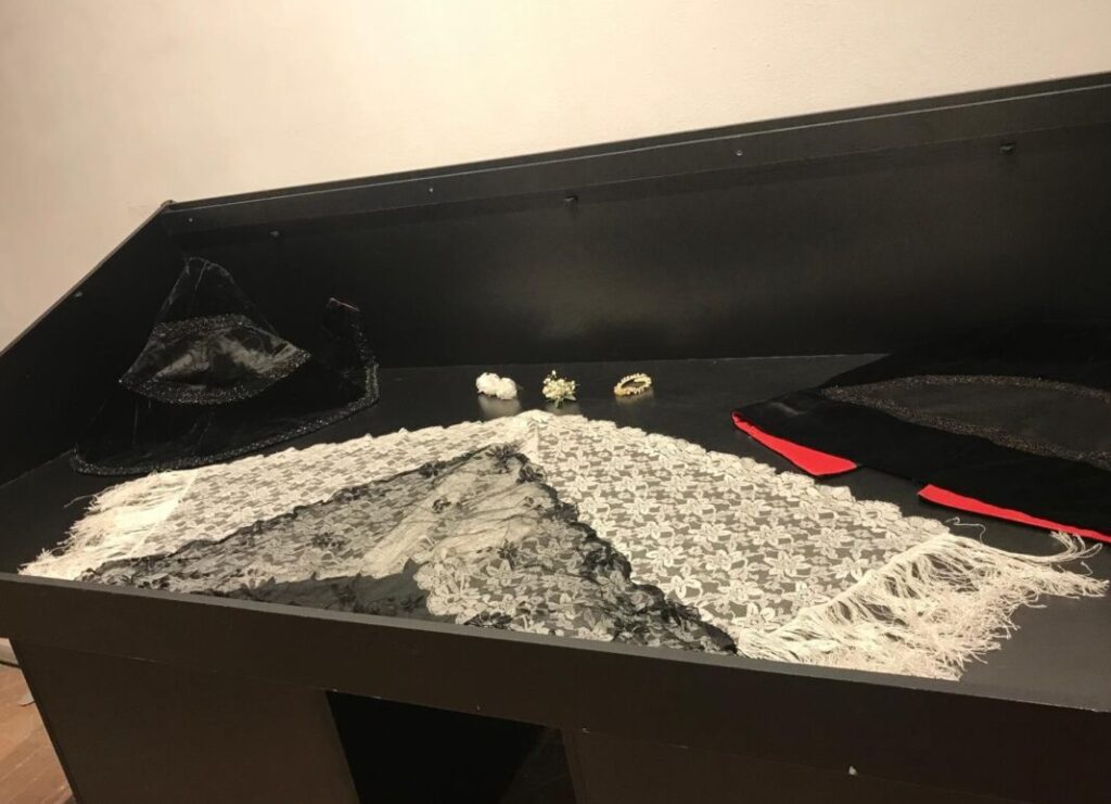 Uno de los objetos más curiosos de la exposición es un reclinatorio adornado para la ocasión a la manera tradicional. Como complemento de la exposición pueden verse en las paredes fotos antiguas de bodas, cedidas por el concejal de cultura de Segovia Juan Carlos Monroy. La muestra ha sido comisariada por Begoña Tardón, responsable del Grupo de Mayores de Cáritas Diocesana de Segovia y está abierta al público de 17 a 20h de miércoles a viernes y los sábados y festivos de 12 a 14h y de 17 a 20h.