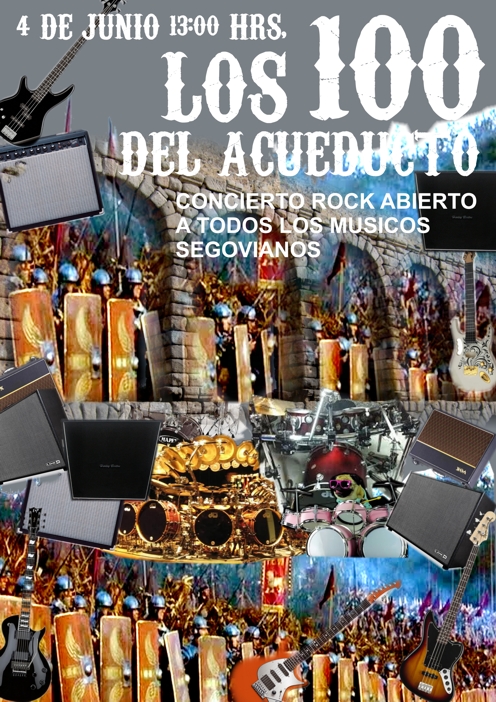 El próximo sábado 4 de junio el Acueducto sonará a rock ‘made in Segovia’. Un centenar de músicos de la capital y provincia tocarán al unísono una selección de cuatro conocidos temas para reivindicar la música rock en directo tanto en nuestra ciudad como en nuestra provincia.