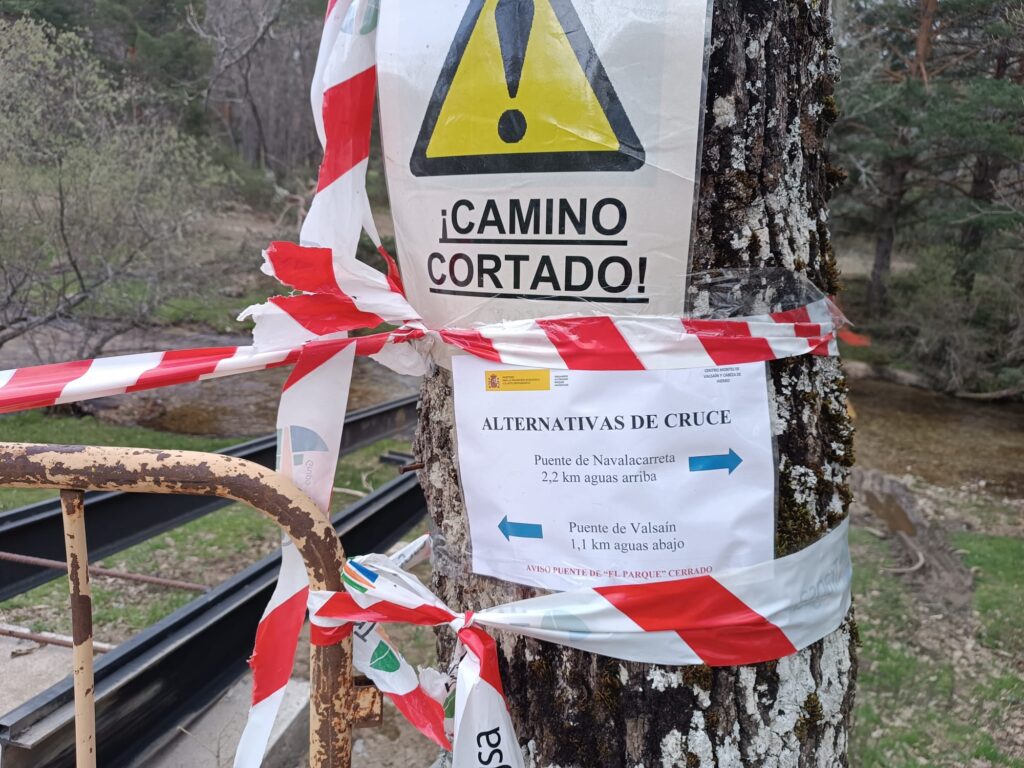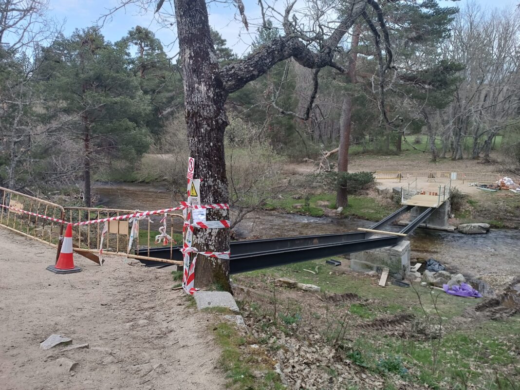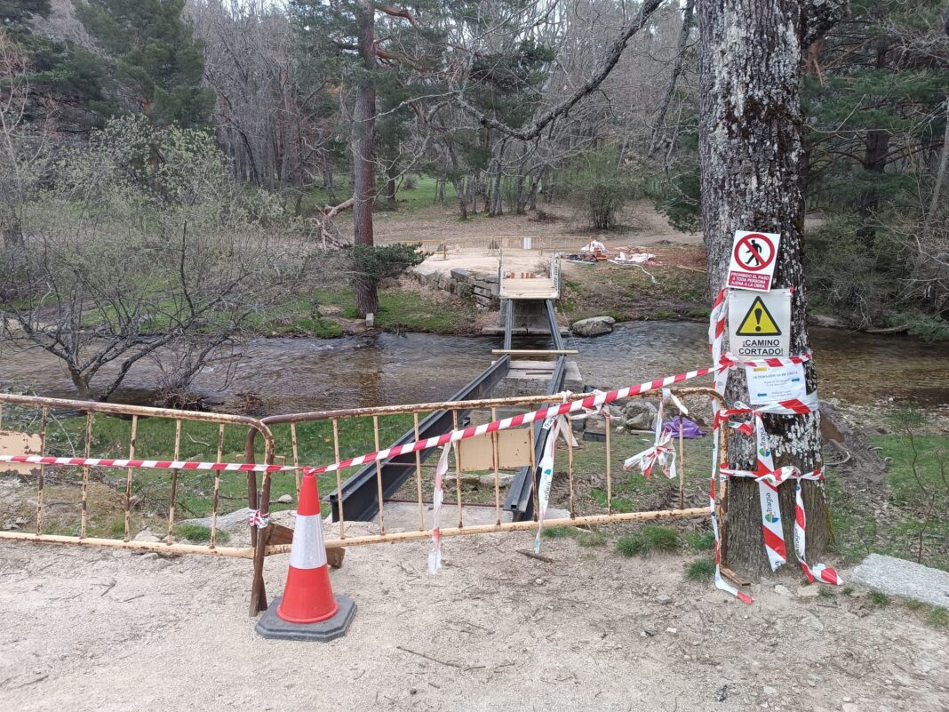 El puente de “El Parque”, que cruza el río Eresma en la conocida Ruta de las Pesquerías Reales, en el entorno de Valsaín, permanece cerrado al paso debido a una actuación en el mismo.