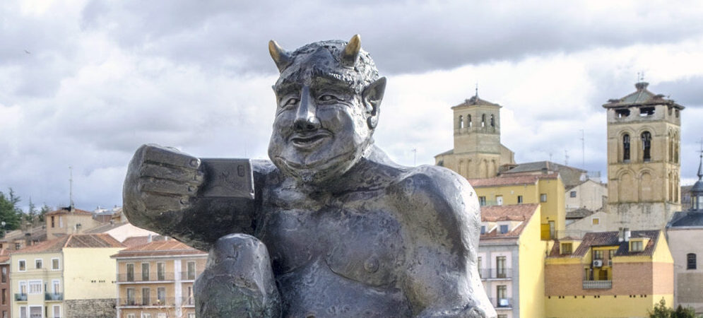 En nuestra ruta hacia el Acueducto, podemos hacer otra parada, no gastronómica pero sí muy turística para hacernos una foto con el ‘Diablillo de Segovia’, con el Acueducto de fondo, por supuesto, para llevarnos un recuerdo.