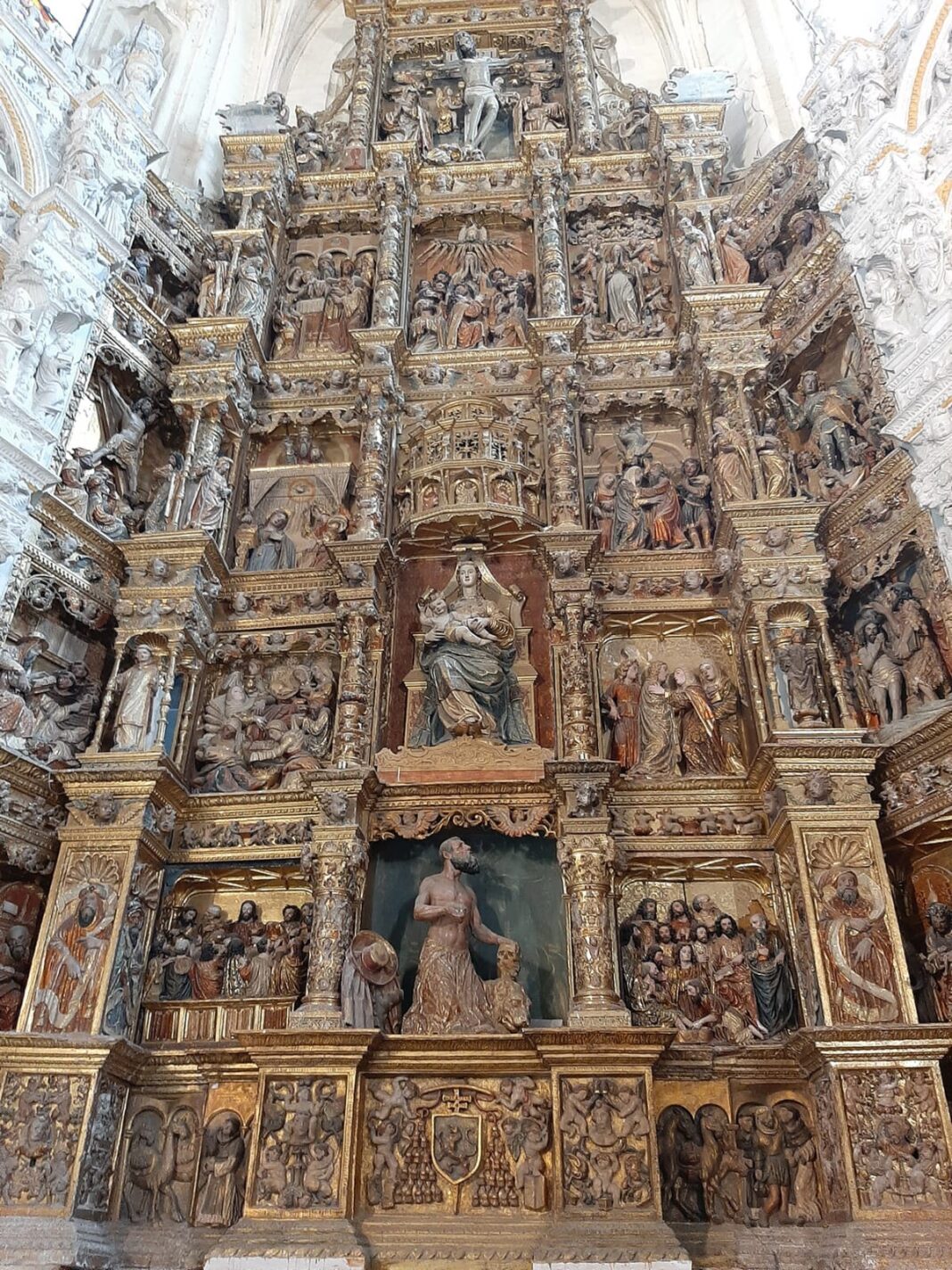 Formado por cuatro cuerpos, un ático y un remate, muestra todo un entramado de calles y entrecalles decoradas con relieves que narran escenas de la Pasión de Cristo con alusiones a la vida de la Virgen. En su ejecución participaron, a lo largo de la segunda mitad del siglo XVI, los entalladores Juan Rodríguez y Jerónimo Pellicer junto al pintor Francisco González y el dorador Diego Urbina.