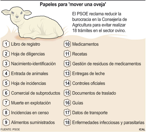 Fuentes, que ha recalcado que las medidas son el recordatorio de compromisos del presidente de la Junta, ha incidido en la reducción de la burocracia de la Consejería de Agricultura y Ganadería, que ha estimado “excesiva” y, con un gráfico que ha mostrado, ha destacado que hacen falta “dieciocho papeles”, en referencia a los trámites, “para mover una oveja.