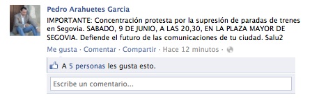 Ante la ausencia de contestación de una carta remitida por el primer edil de Segovia el presidente de Renfe, Arahuetes interpretó “que no hay interés por parte de Renfe de dialogar y comunicar de manera directa los cambios a Segovia”, por lo que manifestó que “vamos a luchar con todas nuestras armas políticas y sociales para evitar esta supresión”.