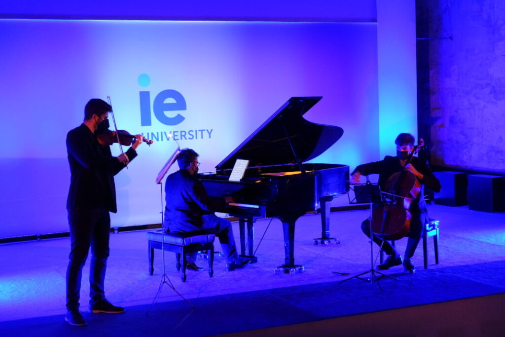 En el Aula Magna de Ie University, actuó el trío Joan Manuel Serrat, formado por el violinista Javier Fernández, el violonchelista Diego Jiménez y el pianista Manuel Tévar. Interpretaron un repertorio con temas de Serrat, Los Beatles o Piazzola, entre otros.