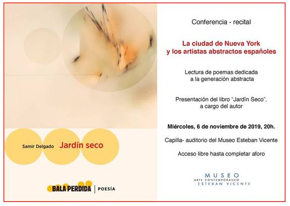 El próximo miércoles, 6 de noviembre, a las 20h., el poeta canario Samir Delgado ofrece una conferencia-recital sobre arte abstracto en el Museo de Arte Contemporáneo Esteban Vicente de Segovia.