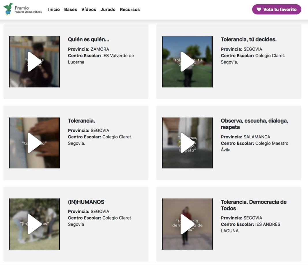 Vota tu vídeo preferido: https://premiosvaloresdemocraticos.com/finalistas.php
