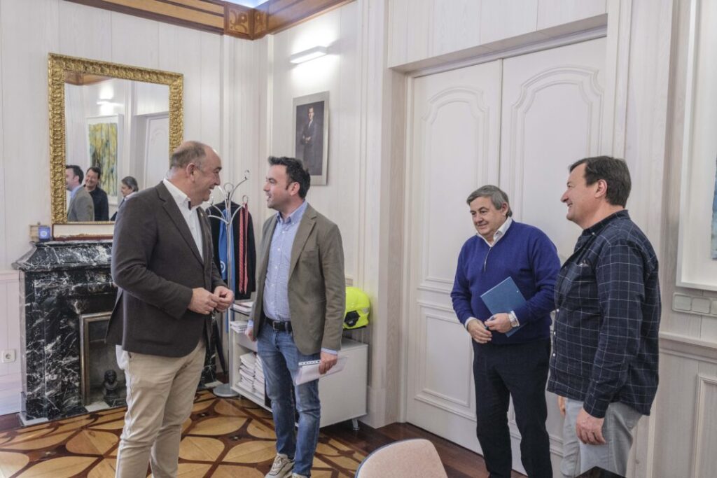 El presidente de la Diputación, Miguel Ángel de Vicente ha recibido en visita institucional, en su despacho del Palacio Provincial, al alcalde de Cuéllar, Carlos Fraile. Acompañados por el diputado de Acción Territorial, Basilio del Olmo y primer teniente de alcalde y concejal de Urbanismo, Medio Ambiente, Seguridad y Tráfico, Tomás Marcos han repasado las principales vías de colaboración existentes entre ambas instituciones, así como los proyectos más inmediatos de la villa para los próximos meses.