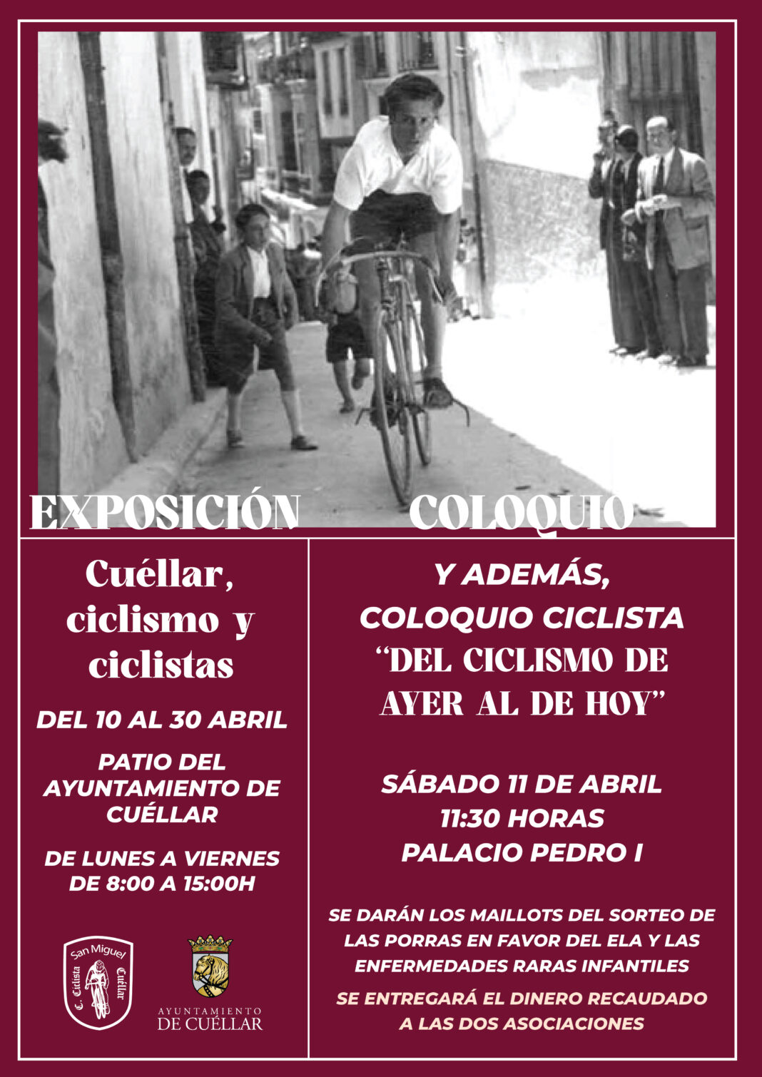 El Ayuntamiento, a través de la Concejalía de Deportes, ha organizado una programación paralela que arrancó el 10 de abril con la exposición “Cuéllar, ciclismo y ciclistas”, instalada en el patio consistorial hasta el día 30. La muestra recorre la historia de este deporte en la villa y podrá visitarse en horario de mañana (de 8:00 a 15:00 horas):