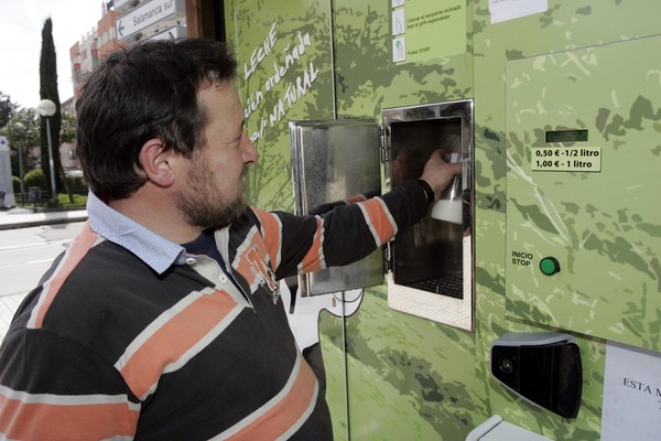 El proceso es sencillo. La propia máquina facilita por 30 céntimos botellas de plástico higienizadas y autoprecintables. A continuación basta con pagar el importe de la leche requerida, colocar el recipiente bajo una boquilla aislada de la polución callejera por una pequeña puerta de aluminio y presionar un botón para que nos llevemos a casa o consumamos allí mismo la cantidad exacta de leche.