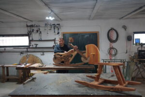 Víctor, un técnico de sonido que dejó el ajetreo de los eventos para volver a Carbonero el Mayor, ha regresado al oficio de la madera que aprendió de su padre y su suegro. En su taller se respira el olor de la tradición y el amor por lo bien hecho.