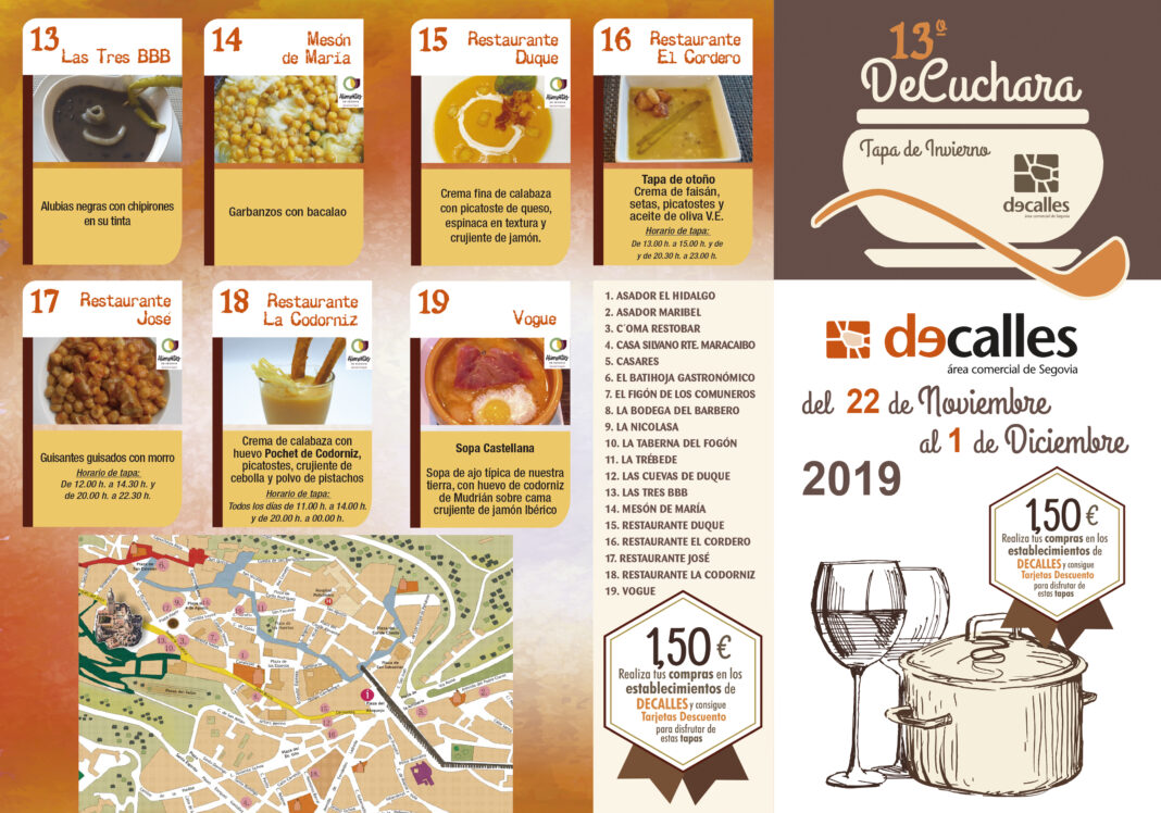 En esta edición, como en los últimos 12 certámenes gastronómicos organizados por Decalles, se ha realizado un maridaje entre comercio y hostelería con la realización de 5.000 tarjetas descuento que los segovianos podrán conseguir al realizar sus compras en los establecimientos de Decalles. La relación entre el comercio y la hostelería en una asociación como el CCA Decalles y más en una ciudad como Segovia debe ser total, Segovia ya es un referente gastronómico y por que no podría convertirse en un referente comercial en nuestra región. Hostelería, comercio, cultura y recursos turísticos son sin duda el escaparate que la ciudad debe ofrecer y al exterior.