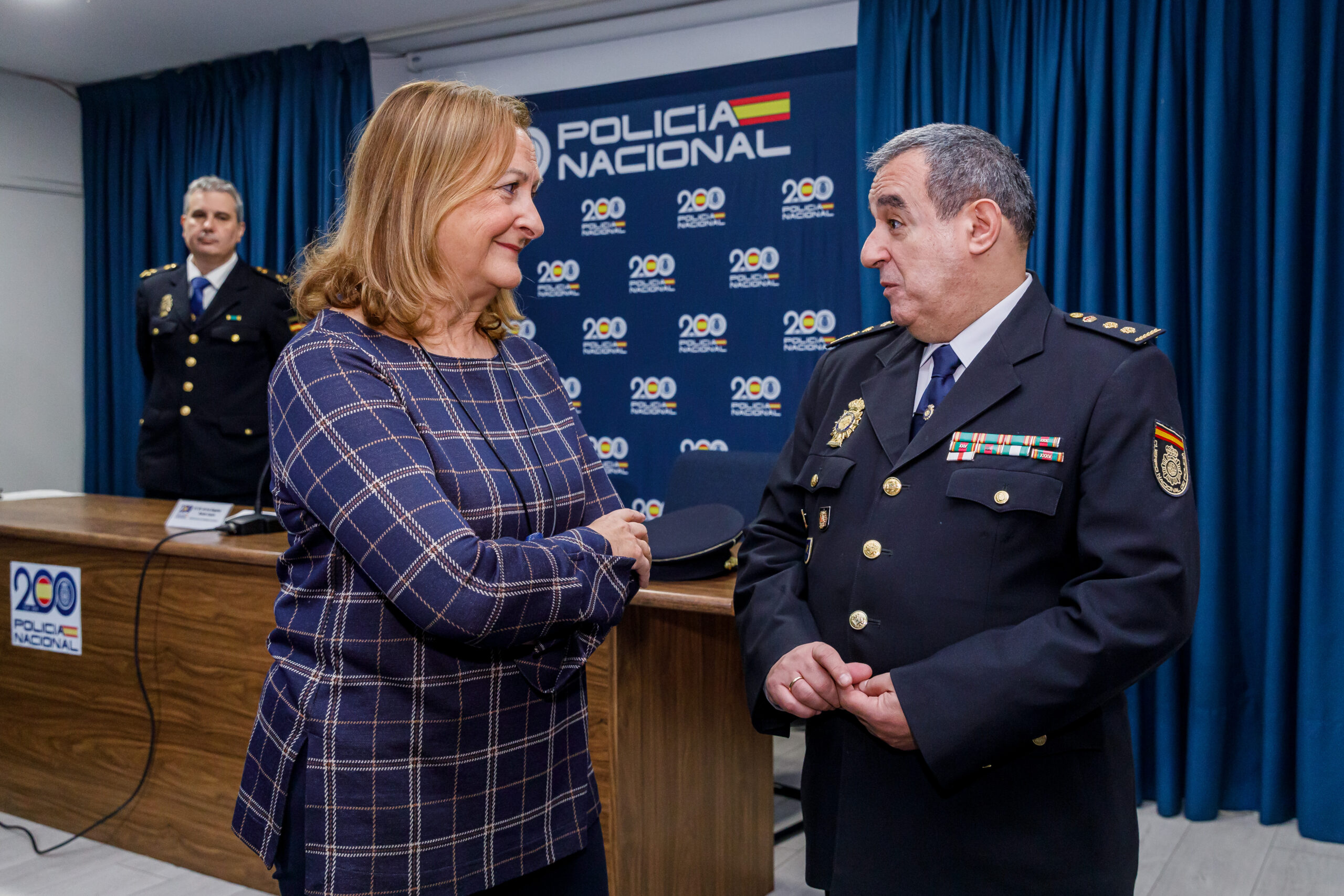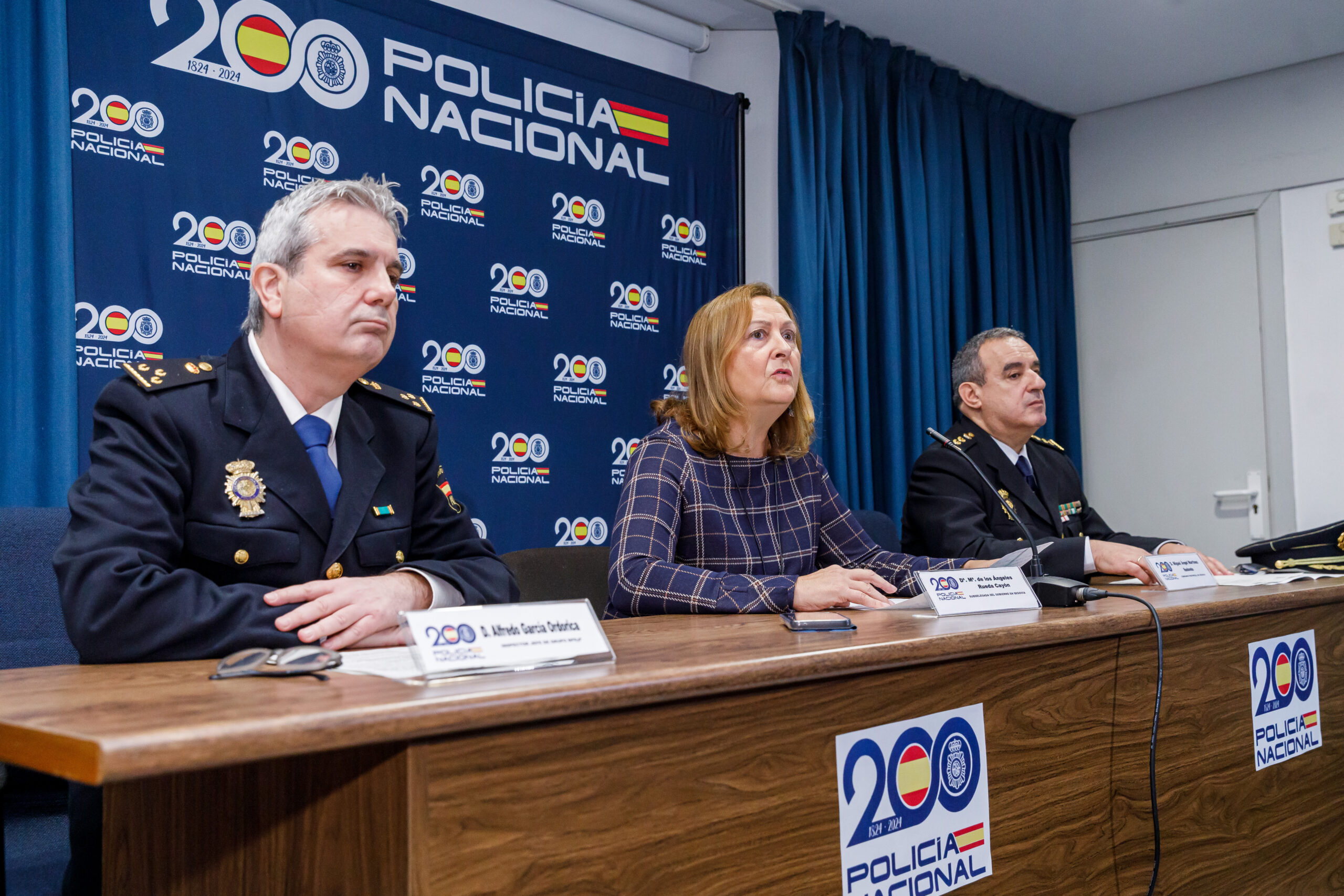 La subdelegada del Gobierno, Marian Rueda (C); el Inspector Jefe de Grupo BPE y F, Alfredo García Ordorica (I); y el comisario jefe de la Policía Nacional en Segovia, Miguel Ángel Martínez (D); informan sobre una importante operación contra el fraude a la Seguridad Social