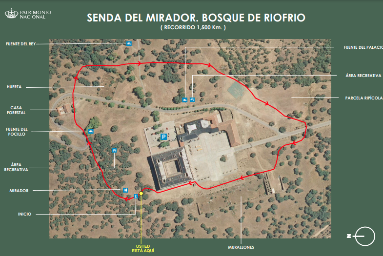El recorrido de la Senda del Mirador está especialmente diseñado como complemento a la visita del Palacio Real de Riofrío. Además, señala Patrimonio Nacional, es muy asequible para todas las edades, también para el público infantil. Se encuentra debidamente señalizada y no requiere servicio de acompañamiento.