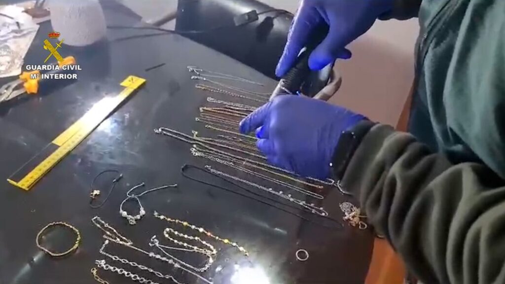 La operación ‘Volcado’ de la Benemérita ha permitido la detención de once personas y se investigan otras nueve por cometer, al menos, 145 delitos de robo en interior de viviendas, con un valor de los efectos recuperados de más de 600.000 euros. Los agentes incautaron también un dispositivo electrónico que usaban para evitar que ladrasen los perros de las viviendas, una piedra de toque con reactivos para comprobar la calidad del oro y un detector de diamantes. Los autores, residentes en Barcelona, hacían largos desplazamientos desde su domicilio a poblaciones situadas a 300 o 400 kilómetros de distancia.