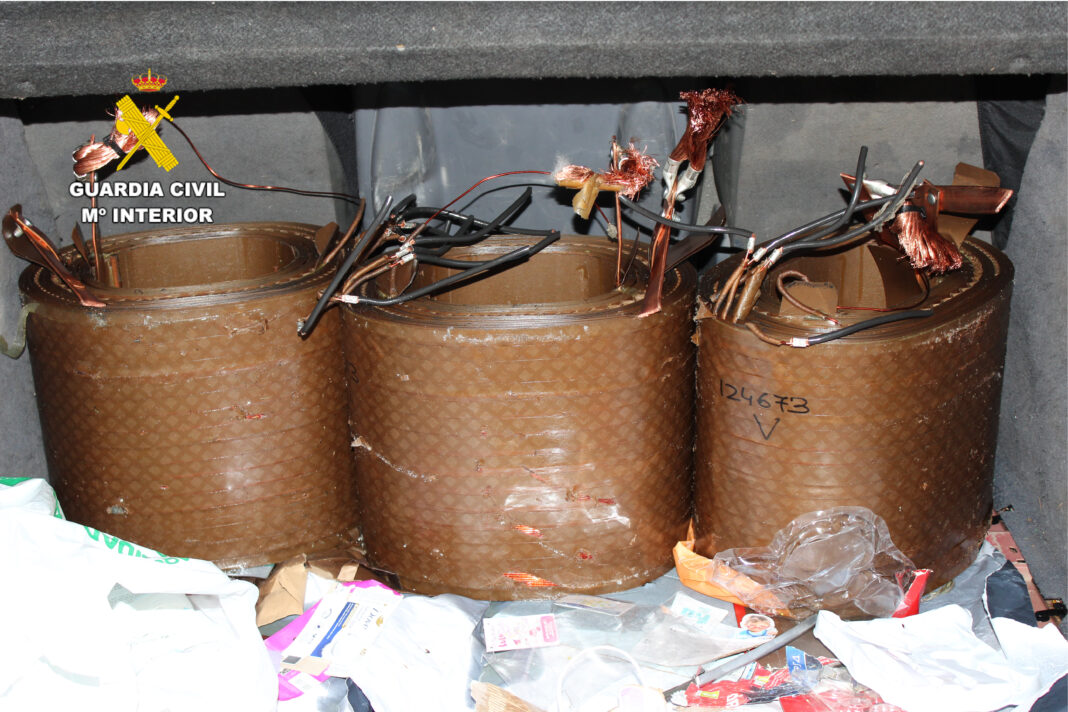 Los detenidos fueron sorprendidos en posesión de tres bobinas de cobre, valoradas en 6.000 euros cada una (18.000 euros en total), sustraídas del interior de un transformador eléctrico situado en el polígono industrial Nicomedes García de la localidad de Valverde del Majano.