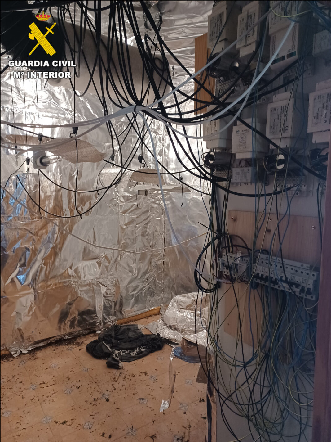 Se descubrió entonces que la vivienda había sido convertida en un sofisticado invernadero para el cultivo indoor de marihuana en sus diferentes fases de crecimiento. Además, en la zona del salón se observó un rudimentario sistema de vigilancia para dar seguridad a la instalación.