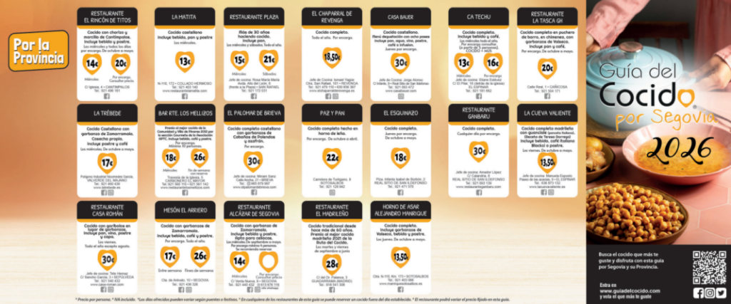 Vuelve la Guía del Cocido por Segovia con su edición número 14. La publicación gastronómica abarca este 2026 un total de 35 restaurantes de la capital y del resto de la provincia.